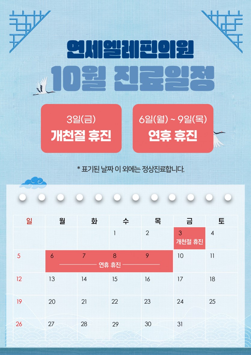 25년도 10월 진료안내 공지 페이지 정보 작성자 최고관리자 댓글 0건 조회 152회 작성일 25-09-29 11:37 목록 본문 25년도 10월 진료안내 공지 다음글25년도 8월 휴진일 공지 25.07.31 댓글 0 댓글목록 등록된 댓글이 없습니다.